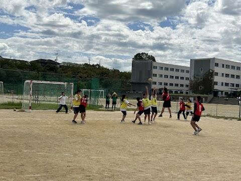 私たちハンドボール部は、年3回ある公式戦で中央大会進出を目標に日々活動しております。