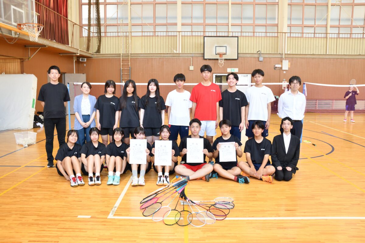 バドミントン部は現在、男子部員16名、女子部員19名が所属しており、「マナーの定着」と「勉強との両立」を目標に部活動に取り組んでいます。