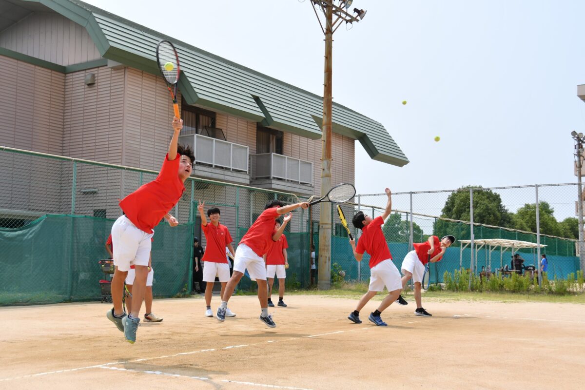 硬式テニス部(男) 男子硬式テニス部は大勢の部員数で活動しています。放課後はボールを使っての練習、さらに定期的に筋トレ、走り込みを行い、技術だけではなく、身体の基礎も作るよう心がけています。 土曜は平日ではできないような練習に取り組み、校内試合や、他の高校との練習試合を行っています。 【主な行事 】 春 : 春季大会 夏 : 夏季合宿 秋 : 秋季大会 冬 : 阪南大会