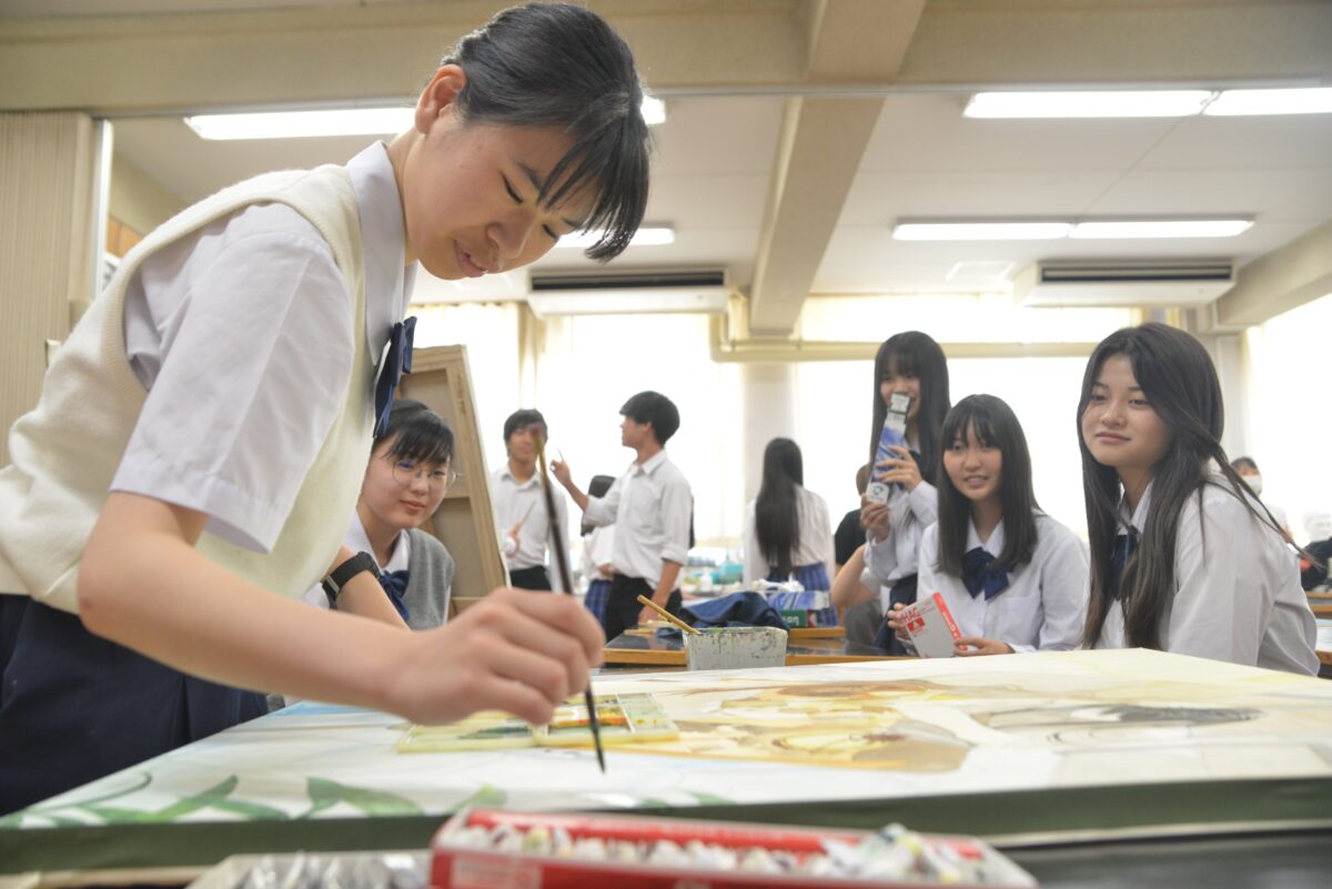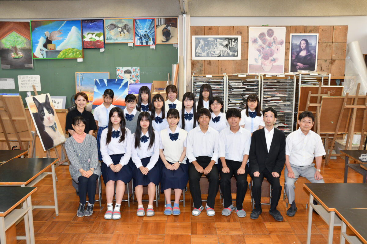 美術部 美術部は美術担当の先生の指導のもと、週二回、放課後に活動しています。主な活動内容は、第9学区ブロック展や全大阪高等学校 美術・工芸展(高校展)へ出展する作品の制作です。F120やF80の大きな油絵を描いています。美術系への進学を目指す生徒はデッサンや水彩画の朝練をすることもあります。普段は、先輩後輩の仲が良く、にぎやかで楽しいクラブですが、作品に取り組む時は真剣に取り組みます。